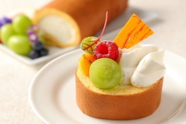 和三盆を使用したなめらかなクリームと長壽卵を使用したもっちり食感のロールケーキ。季節のフルーツと北海道産マスカルポーネのクリームを飾り、爽やかでコクのある味わいに。