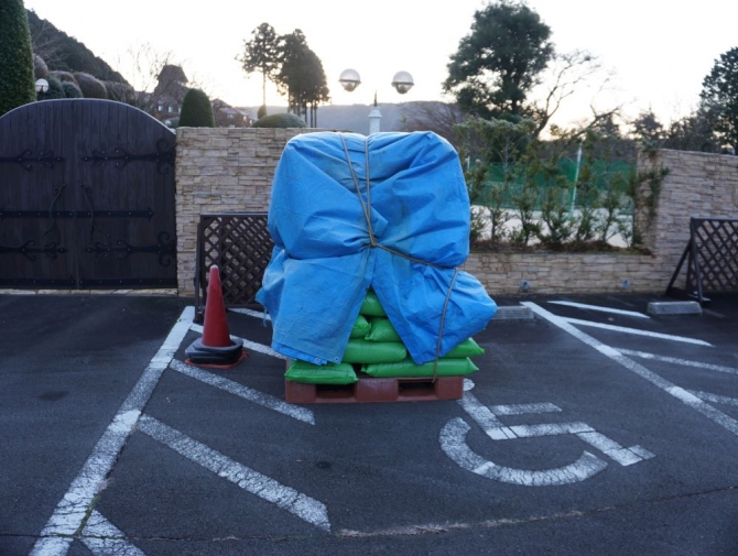 今日も朝から冷え込みが強く各所で霜がみられます。昨日バラに施す「牛糞堆肥」が大量に届きましたので本日は、こちらを株元に施して一連のバラの冬作業はひと段落となります。以前紹介した肥料の施し方で今年はどれだけ綺麗に咲いてくれるか楽しみです。そして、慶良間つつじの養生もさらにバージョンアップしたところ中が見えないほど透明のシートに霜がついていました。こちらも無事咲いてくれることを願います。