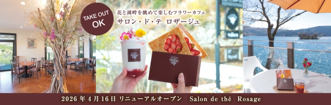 【サロン・ド・テ ロザージュ】花と湖畔を眺めて楽しむフラワーカフェとしてリニューアルオープン!